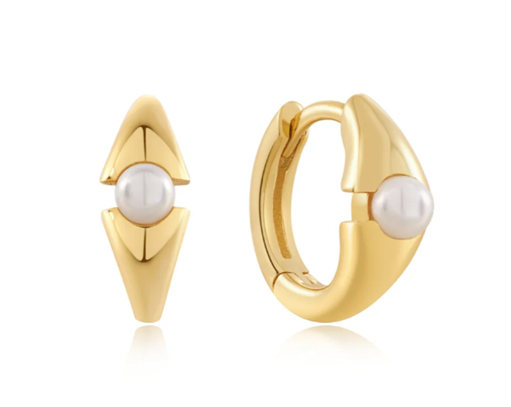 Ania Haie Elegant Gold Pearl Geometric Huggie Hoop