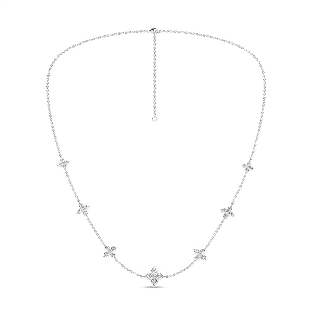 LGD 2CTW 14KWG DIAMOND PETALS STATION NECKLACE 35 ROUND LAB GROWN DIAMONDS E-F VS 18" LOBSTER CLASP