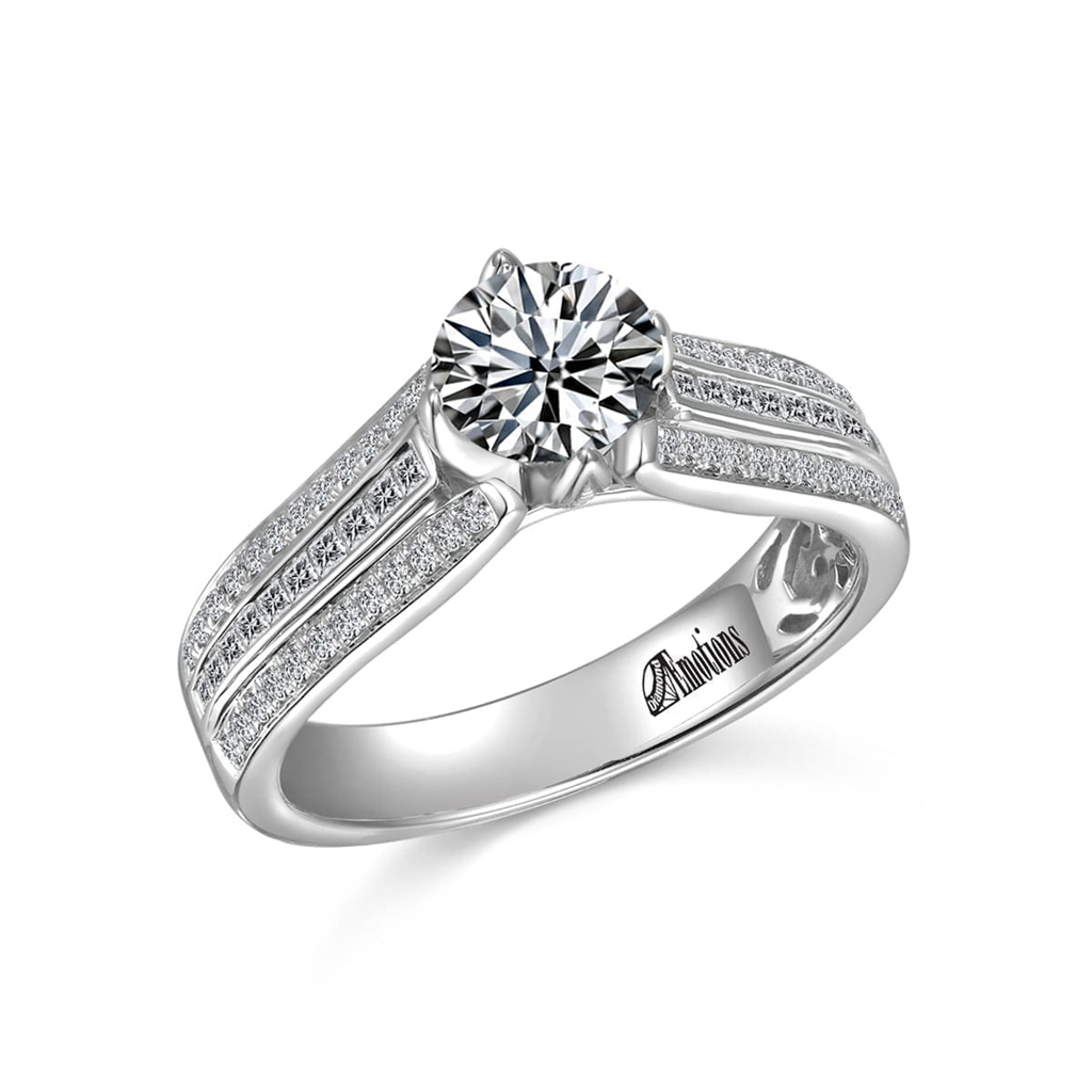 Parker Jewelers in Carlisle, PA, presents a sophisticated solitaire ring featuring a single row of princess-cut diamonds that gracefully frame the center stone. Customizable for round or princess-cut center diamonds (.50Ct-1.00Ct).