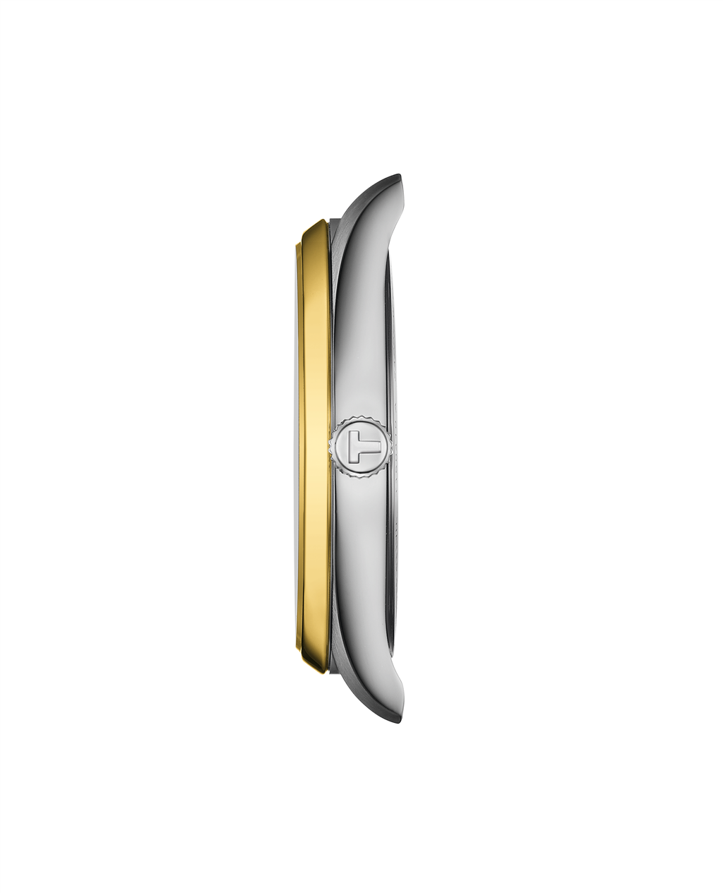 Discover the best-selling Tissot PR 100 at Parker Jewelers. This elegant timepiece offers precise timekeeping, a minimalist design with SuperLuminova®-coated hands, and water resistance up to 10 bar. Crafted with a 316L stainless steel case and yellow gold PVD coating, the watch features a scratch-resistant sapphire crystal and a quick-release bracelet for easy replacement.
