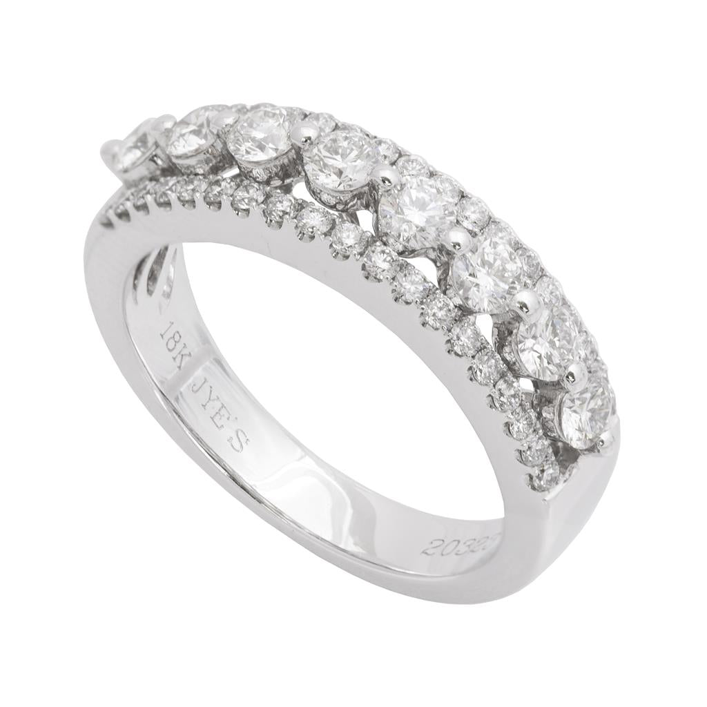 The 18KWG/PD Diamond Band features 46 meticulously set round brilliant cut diamonds totaling 1.09CTW, offering unmatched sparkle and elegance. Crafted in luxurious 18K white gold and palladium, this band is perfect for celebrating timeless love and sophisticated style. Available exclusively at Parker Jewelers, a family-owned jewelry store in Carlisle, PA.